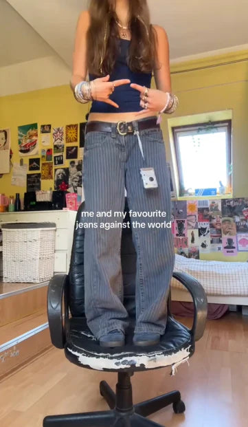 PRINTED PINSTRIPE JEANS